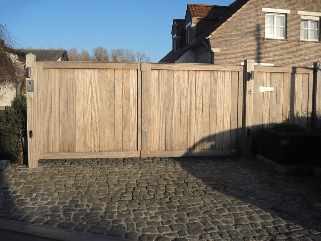 Poorten Pauwels specialiseert zich volledig in houten opritpoorten op maat. Wij verwerken in onze eigen schrijnwerkerij het onbehandelde tropisch hardhout tot een kant-en-klare opritpoort. Onder persoonlijke leiding van zaakvoerder Peter Pauwels staat onze montageploeg in voor de volledige plaatsing, al dan niet met poortautomatisatie.